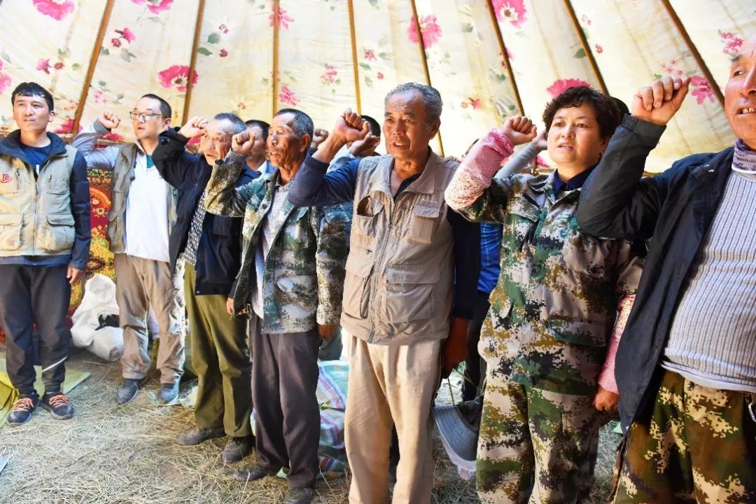 下午,永利集团东天山考古队临时党支部成员与石人子村的6位党员同志召开了党员会议。会议第一项为重温入党誓词。在领誓人朱江嵩同志的带领下,全体党员同志面朝党旗,举起右臂,回顾入党宣誓时的庄严承诺,只有不忘初心,方能砥砺前行。