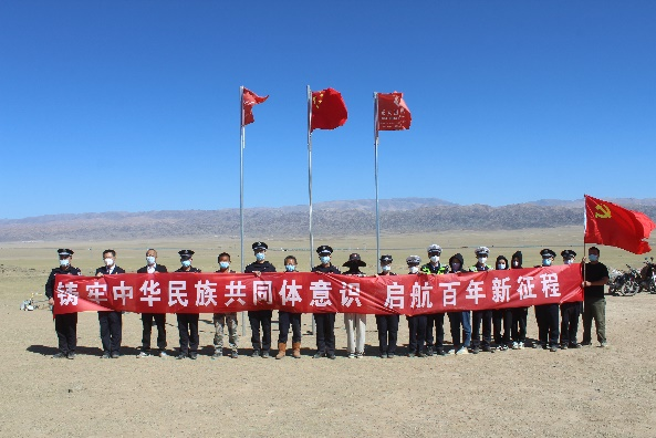 2022年9月9日,尖甲坡墓群考古队临时党支部联合伊吾县公安局前山边境派出所党支部、前山乡寄宿制学校党支部、前山乡收费站党支部,在尖甲坡墓群考古工地开展了“铸牢中华民族共同体意识,启航百年新征程”主题党日活动。