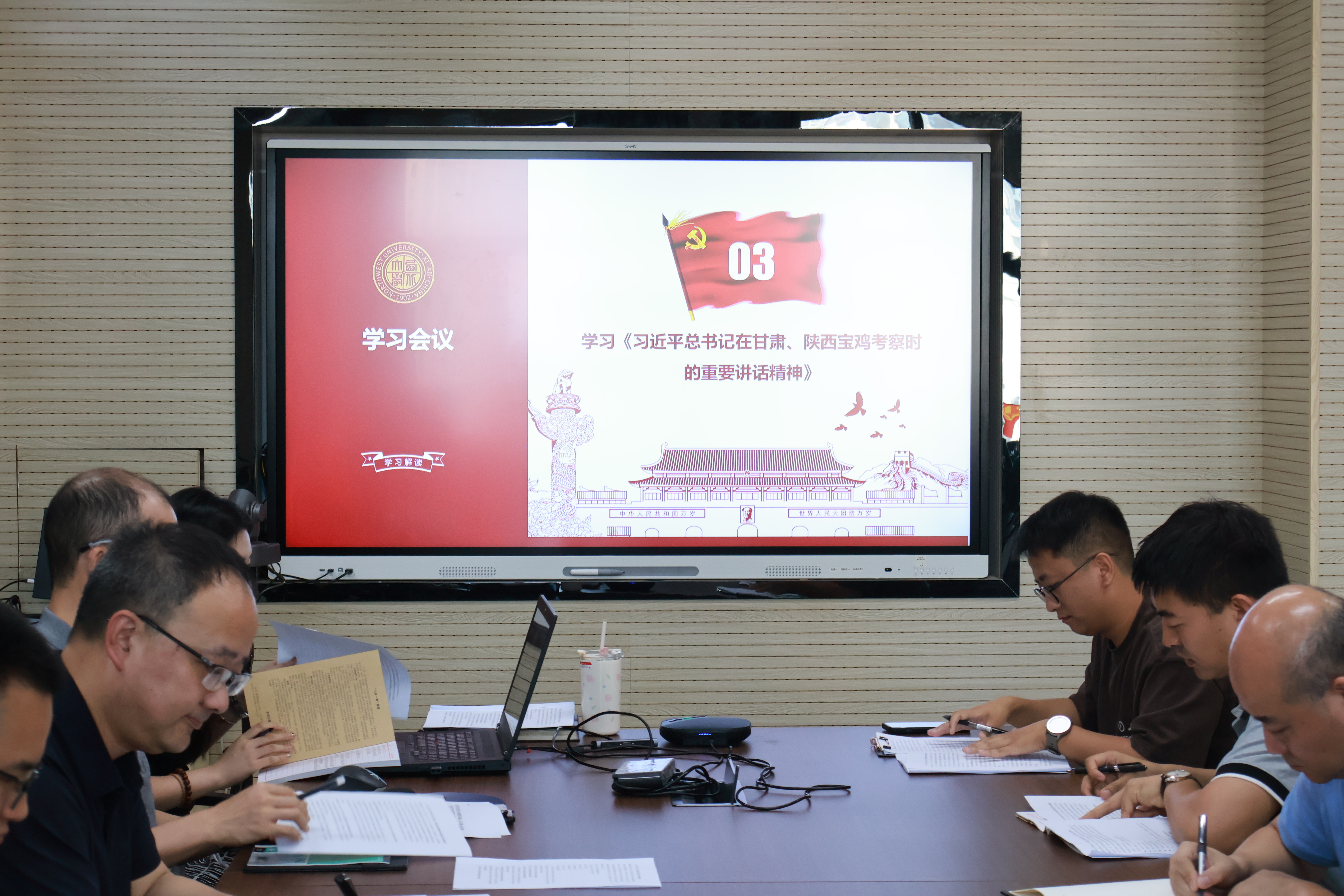 会议第三项,由考古学系教师党支部副书记薛程带领大家重点学习了《习近平总书记在甘肃、陕西宝鸡考察时的重要讲话精神》。讲话中,习近平总书记对文化遗产保护、乡村振兴、生态文明建设等方面提出了明确要求。与会人员深入学习领会讲话精神,将保护文化遗产、传承中华优秀传统文化的责任扛在肩上,积极投身到文化强国建设的伟大实践中去。