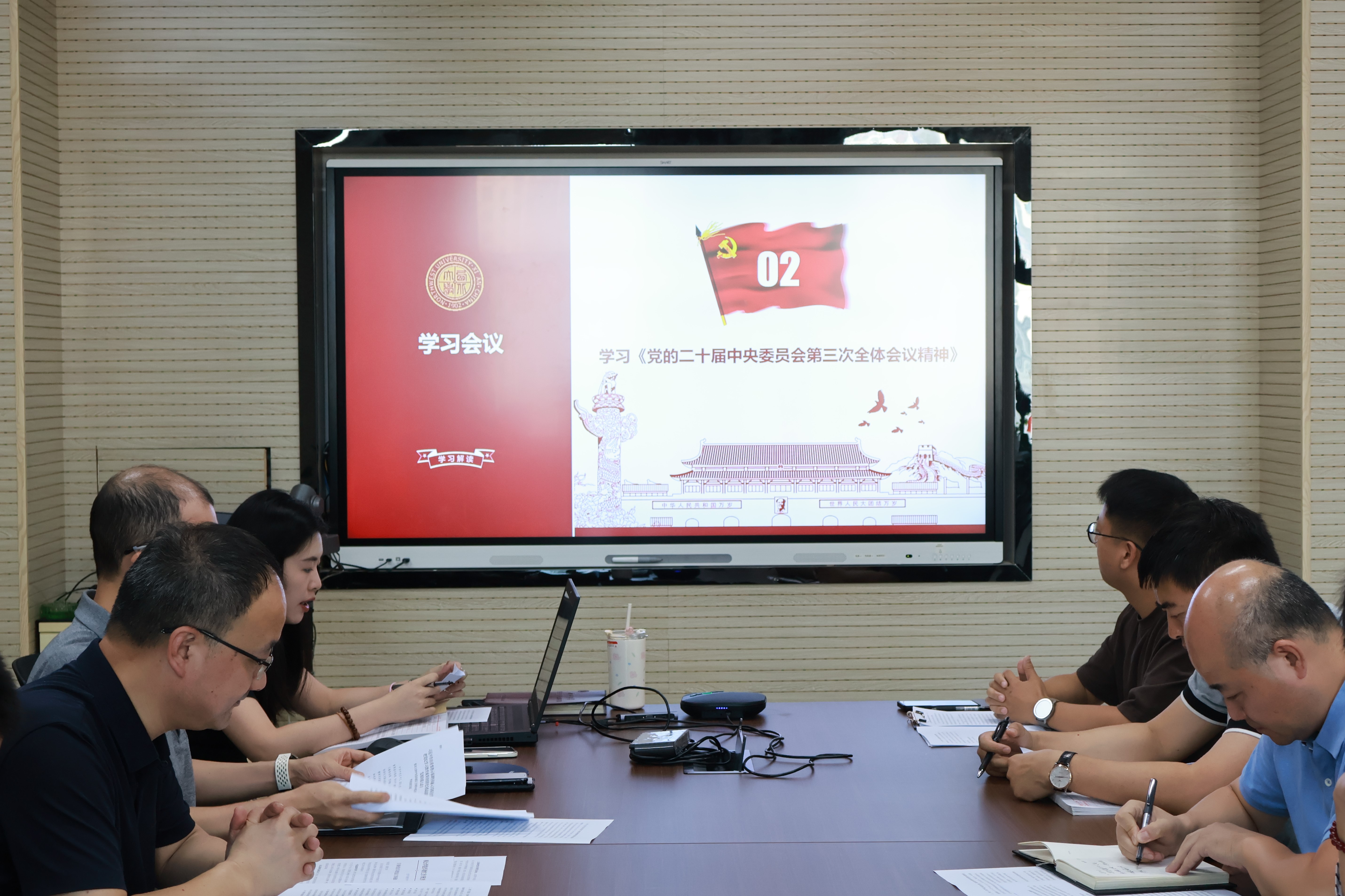 会议第二项,本科生党支部书记丁恬领学《中国共产党第二十届中央委员会第三次全体会议精神》。强调了会议在推进中国式现代化、实现民族复兴中的关键作用。与会人员深入研读会议背景、概况及改革举措,明确深化改革、推进现代化的意义与要求,深刻把握会议精神实质。