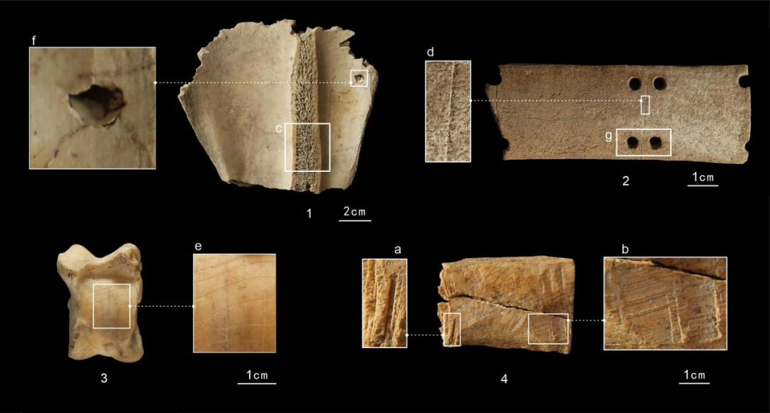 1.刮削器半成品 2、4.骨甲 3.羊距骨