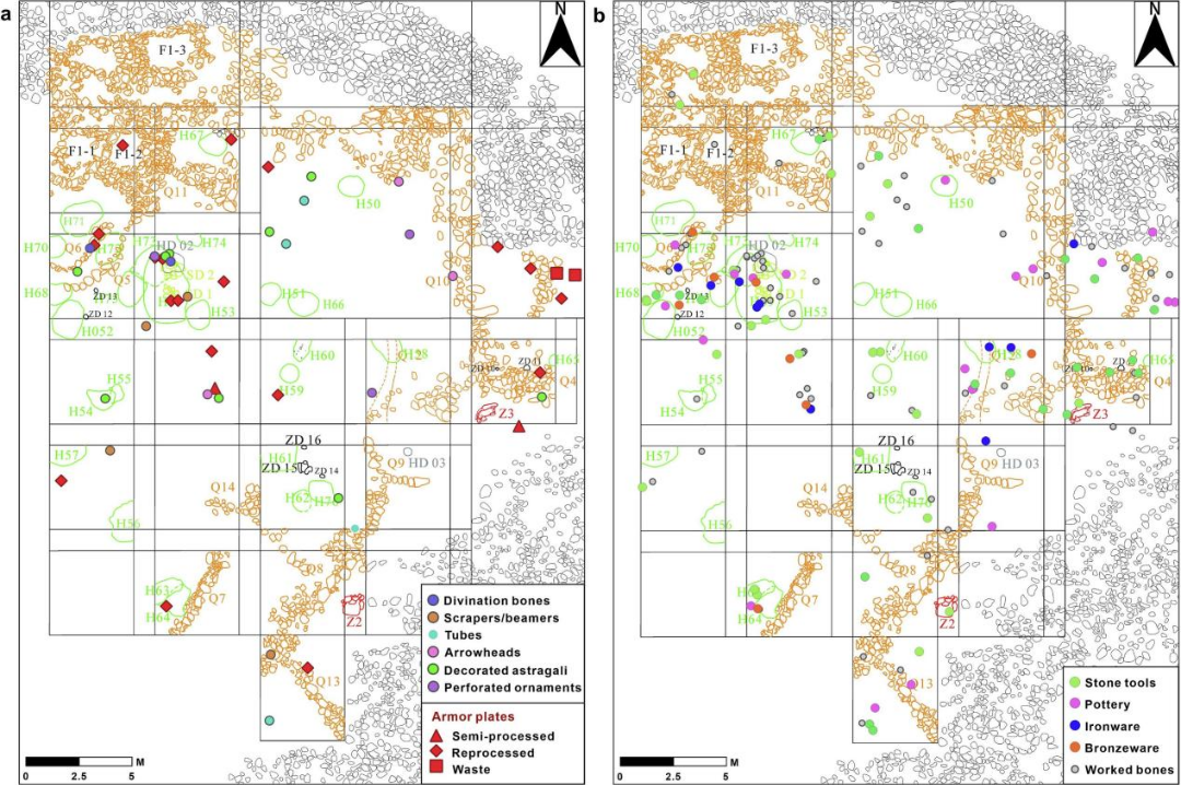 图6 a.IIIF1骨制品空间分布情况 b.IIIF1遗物空间分布情况