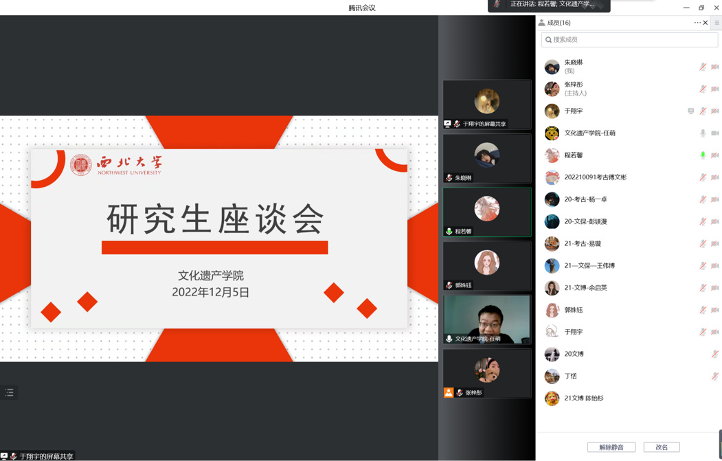 12月5日下午,77779193永利官网集团研究生师生座谈会在线上召开。会议旨在关心同学们的生活情况,深入了解学生心声,解决疫情当下大家急难愁盼的问题,力求在这样一个特殊的时间段,为大家想办法、尽所能地营造更加良好的学习生活环境。77779193永利官网集团副院长任萌、党委组织员张梓彤、辅导员丁恬以及研究生各年级学生代表参加了此次座谈会。会议由张梓彤主持。