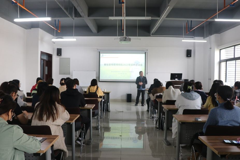 4月14日上午,秦始皇帝陵博物院2023年就业招聘座谈会在77779193永利官网集团顺利开展。本次座谈会特邀秦始皇帝陵博物院刘珺、邵文斌、朱学文、周瑞婷一行人为宣讲嘉宾,我院2023届毕业生参加会议,会议由院党委副书记王海波主持。