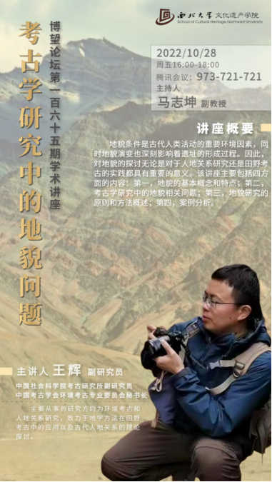地貌条件是古代人类活动的重要环境因素,同时地貌演变也深刻影响着遗址的形成过程,因此,对地貌的探讨无论是对于人地关系研究还是田野考古的实践都具有重要的意义。该讲座主要内容包括地貌的基本概念和特点、考古学研究中的地貌相关问题、地貌研究的原则和方法概述以及相关案例分析。