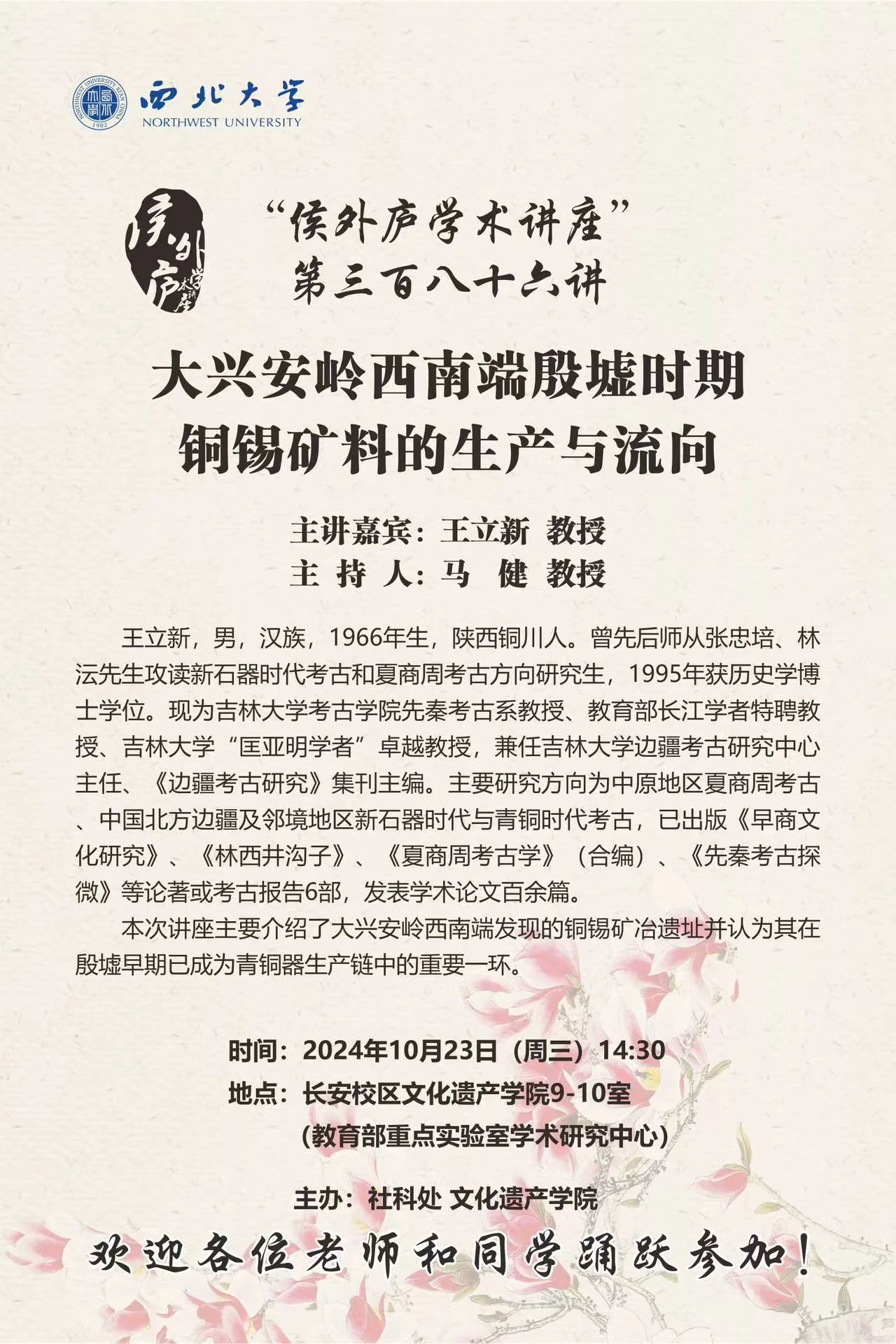 主讲人简介:王立新,男,汉族,1966年生,陕西铜川人。曾先后师从张忠培、林沄先生攻读新石器时代考古和夏商周考古方向研究生,1995年获历史学博士学位。现为吉林大学考古学院先秦考古系教授、吉林大学“匡亚明学者”卓越教授、国家级高层次人才入选者,兼任吉林大学边疆考古研究中心主任、《边疆考古研究》集刊主编。主要研究方向为中原地区夏商周考古、中国北方边疆及邻境地区新石器时代与青铜时代考古,已出版《早商文化研究》、《林西井沟子》、《夏商周考古学》(合编)、《先秦考古探微》等论著或考古报告6部,发表学术论文百余篇。