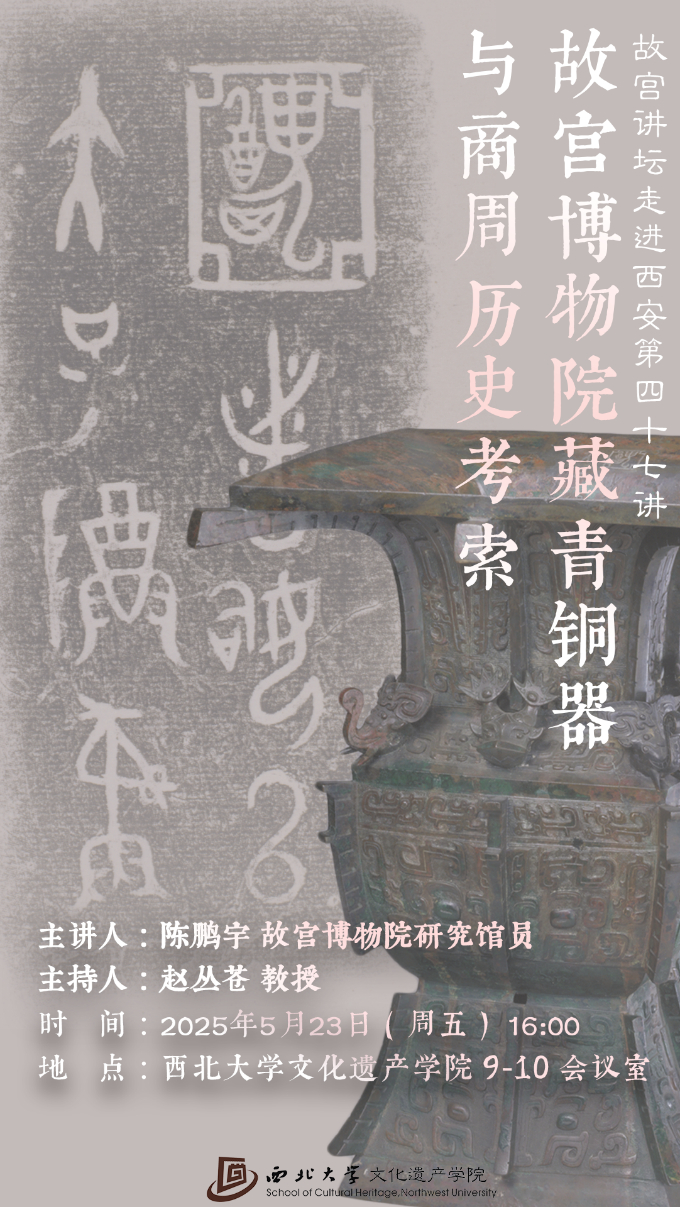 主讲人介绍:陈鹏宇,故宫博物院器物部金石组研究馆员。清华大学历史系博士毕业。主要研究方向为青铜器、古文字。曾在《光明日报》《故宫博物院院刊》《出土文献》等刊物发表多篇介绍、研究故宫藏青铜器等古文字材料的文章。现主持国家社科基金冷门绝学研究专项“故宫博物院藏‘乾隆四鉴’青铜器整理与研究”(批准号:20VJXG001)。任“十四五”规划《(新编)中国通史》纂修工程《中国历史图录卷》核心作者,并为“古文字与中华文明传承发展工程”故宫博物院协同攻关创新平台骨干研究人员。