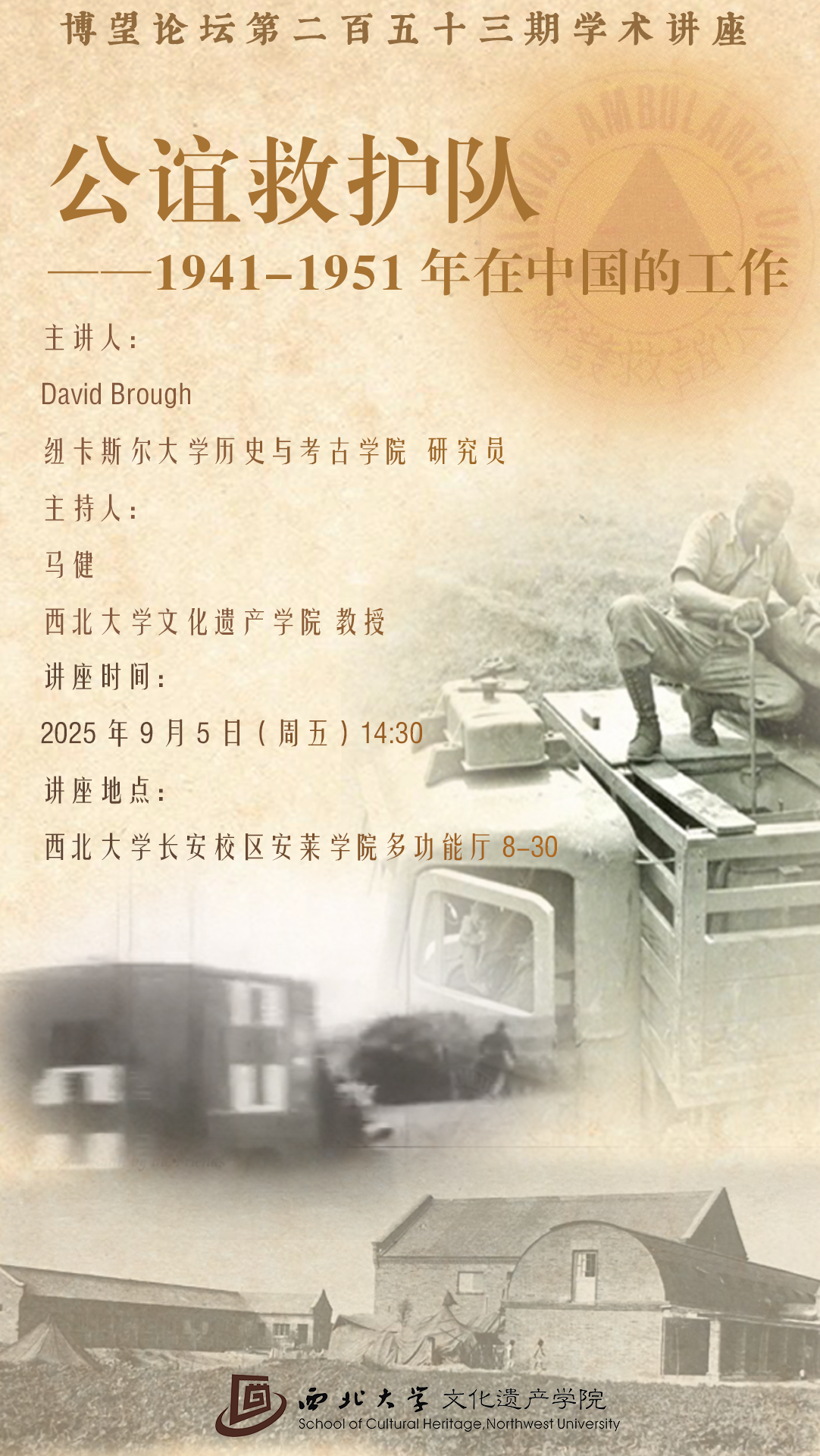 讲座概要:大卫在遗产保护与管理领域拥有20多年的研究与工作经验。主要研究领域罗马帝国方向/哈德良长城世界遗产的保护与管理。自2013年起,他开始与中国遗产保护工作者开展合作,并于2017年出任中英长城遗产保护合作项目“双墙对话”的英方协调人,负责协调中国长城与英国哈德良长城两大世界遗产地的交流合作与研究工作。大卫研究员的父亲是中国公谊救护队的一员,这是一个由英、美、中、加、新西兰等国志愿者共同成立的人道主义救援组织,他们以在抗日战争期间及战后为多灾多难的中国人民减轻伤痛为宗旨,在1941年至1951年期间在中国开展了大量的人道主义救援工作。大卫研究员对父亲曾参与的“公谊救护队中国志愿队”历史展开了大量民间研究与调查工作,以大卫的研究成果为主从2014年起至2019年先后在西安、延安、北京、南京等地举办过四次相关主题展览,持续推动中国人民对这段历史故事的了解。
